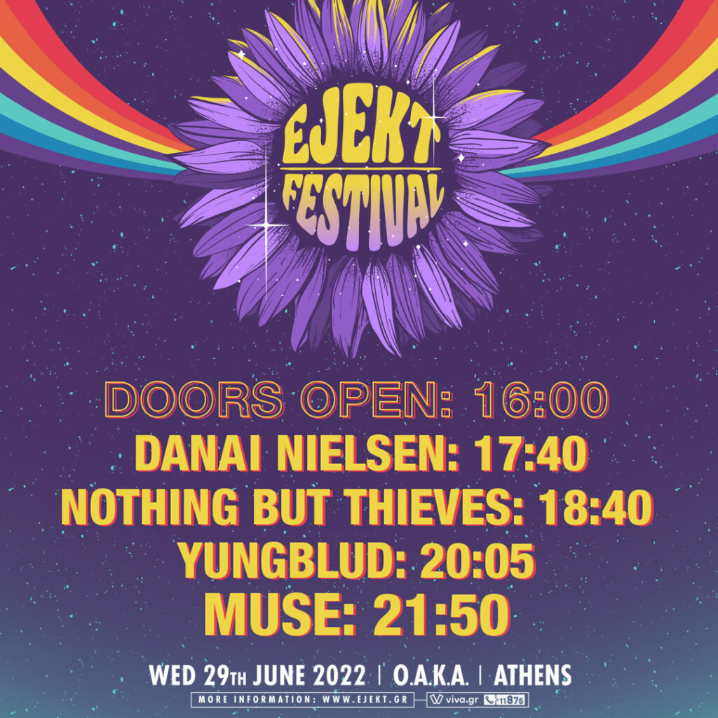 MUSE - 21:50 To EJEKT Festival 2022 υποδέχεται τους Muse! Οι Βρετανοί super stars της ροκ μουσικής θα είναι οι headliners του EJEKT Festival 2022 την Τετάρτη 29 Ιουνίου 2022 στο Ο.Α.Κ.Α. Πριν από έξι χρόνια, οι Muse έκαναν την πρώτη εμφάνισή τους στη σκηνή του EJEKT Festival, γράφοντας ιστορία με μια αξέχαστη εμφάνιση που επί δύο ώρες ξεσήκωσε τους 30.000