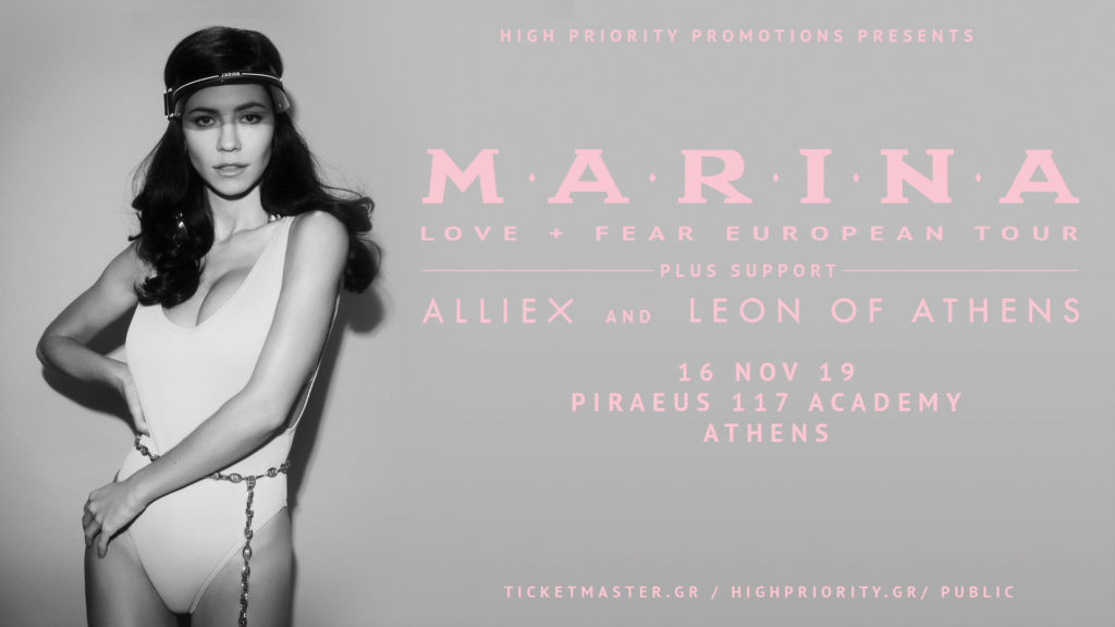 Rule number one, is that you gotta have fun! Το Love+Fear Τour ξεκίνησε και η MARINA μετρά αντίστροφα για την επιστροφή της στα πάτρια εδάφη, το Σάββατο 16 Νοεμβρίου στο Piraeus 117 Academy! Μαζί της η Καναδή avant - garde pop σταρ Allie X και ο δικός μας Leon of Athens! https://www.youtube.com/watch?v=9A6_a-Suv9c Η